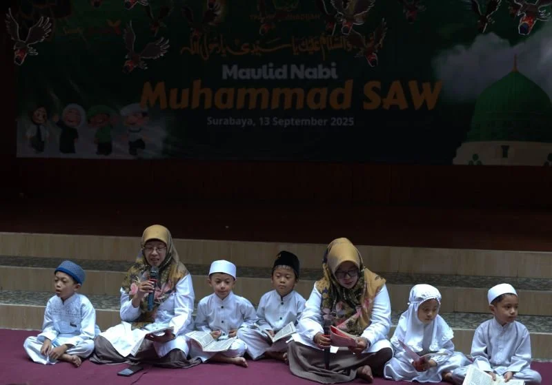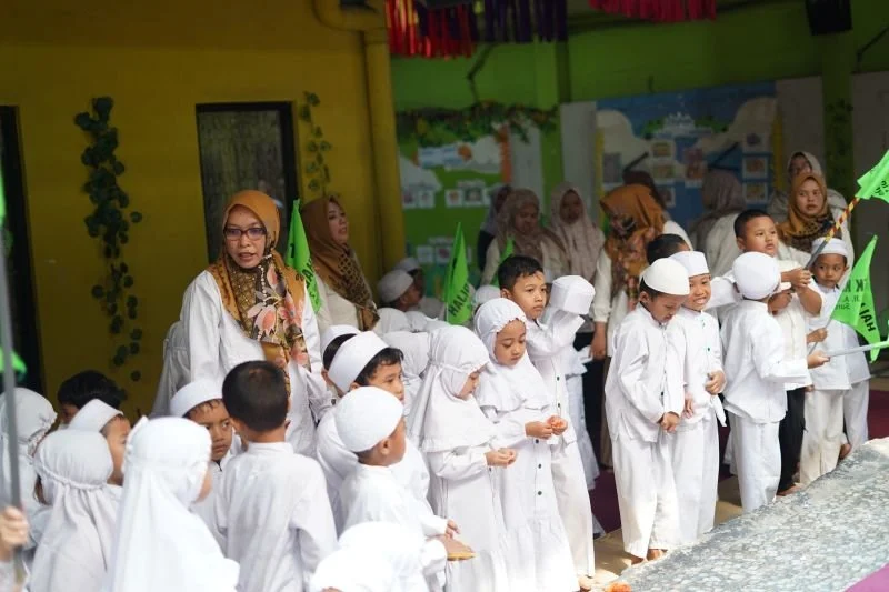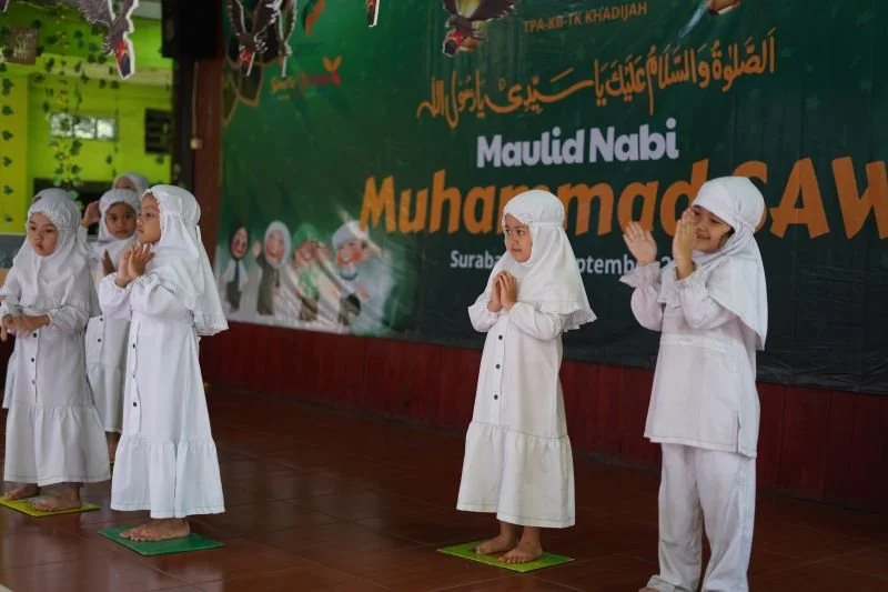 Seluruh murid KB-TK Khadijah berkumpul bersama dengan para ibu guru membaca sholawat kepada junjungan tercinta Rasul Muhammad SAW. ( 12/9/2025). Kegiatan yang diawali dengan membaca surat Al Fatihah secara bersama-sama. dilanjutkan membaca asmaul husna yang dipimpin oleh Bu Zila dan Bu Widi. Sebelum pembacaan Maulid Dibai. Kepala PAUD Khadijah Bu Siti Malichah, S.Pd menyampaikan bahwa kegiatan peringatan Maulid Nabi Muhammad SAW di sekolah bertujuan untuk menanamkan kecintaan kepada Nabi Besar Muhammad SAW sang teladan terbaik untuk umatnya.